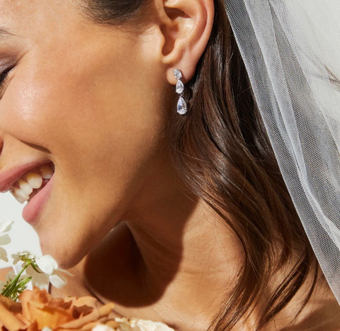 Our #1 best-selling earrings! Add glamour to your look with these stunning oval and pear-shaped cubic zirconia drop earrings. Now available in gold plating!