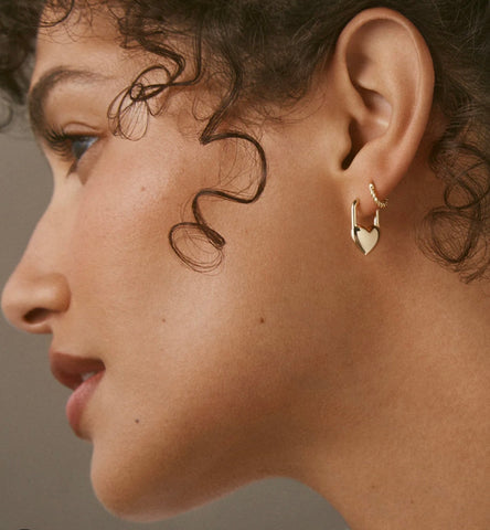 The perfect mix of edgy and sweet, these 18k gold plated huggie hoop earrings feature a heart padlock design. Their size and fit makes them ideal for first or second piercings, letting you stack them effortlessly alongside other hoops and studs to create a look that’s uniquely yours.