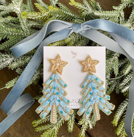 Celebrate the season with our Christmas Raffia Tree Earrings, where playful materials meet harmony and elevated design. Handcrafted by skilled artisans, these unique earrings feature delicate and timeless raffia that exudes relaxed vibes, seamlessly blended with shimmery materials to create a perfect balance of sparkle and fun. Adorned with small dainty beads and shimmering badka material, they embody the essence of holiday cheer while maintaining a refined look. Get ready to receive compliments, as these enchanting earrings add a delightful pop to any outfit and truly embrace the spirit of the season! - Handmade - Length 2.75 inches - Lead and Nickel Free